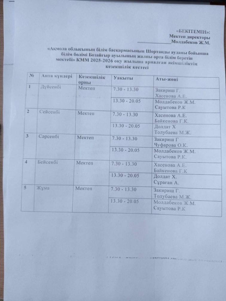 коммунальное государственное учреждение «Общеобразовательная школа села Бозайгыр отдела образования по Шортандинскому району управления образования Акмолинской области»
