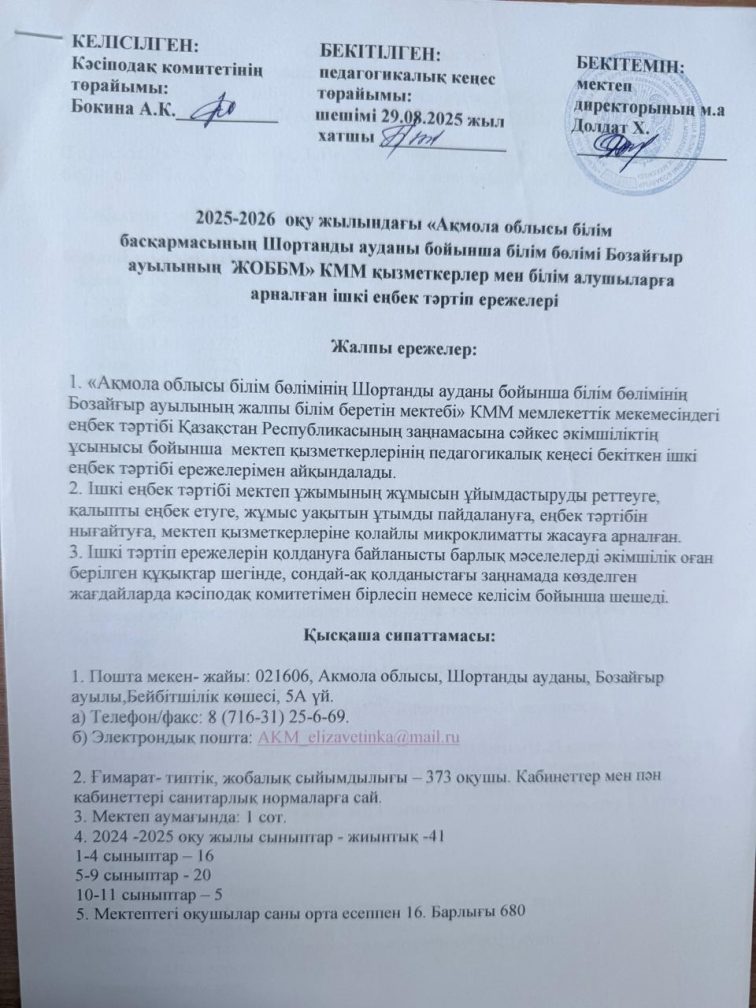 2025-2026 оқу жылындағы қызметкерлер мен білім алушыларға арналған ішкі еңбек тәртіп ережелері