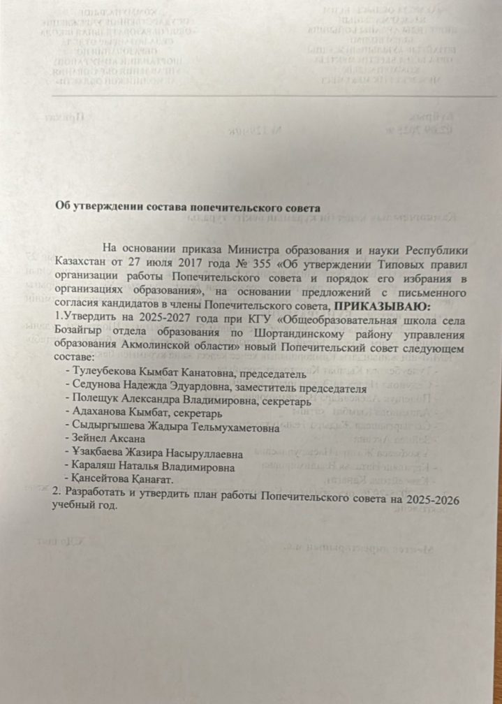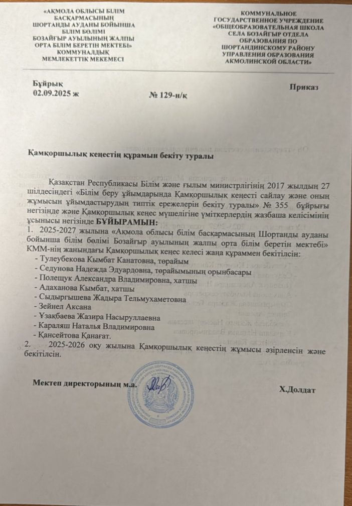 2025-2026 оқу жылының Қамқоршылық кеңесі құрамын бекіту туралы бұйрық